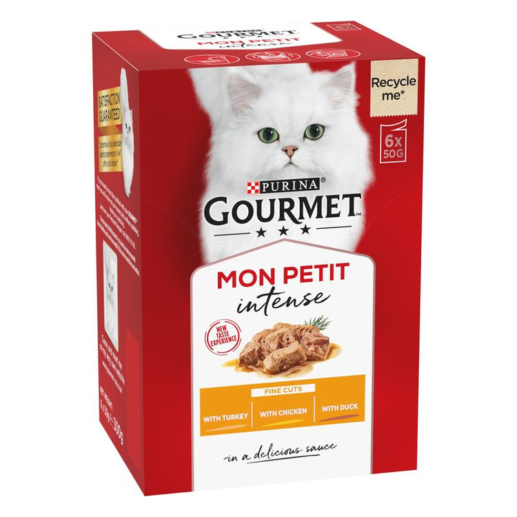 پوچ گربه گورمت طعم مرغ و بوقلمون و ارک Gourmet mon petit chichen turkey duck وزن 50 گرم پک 6 عددی