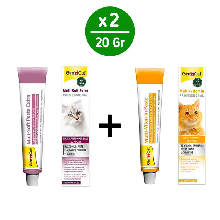 خمیر مالت و مولتی ویتامین گربه جیم کت Gimcat Multivitamin & Malt Paste وزن 20 گرم - پک 2 عددی
