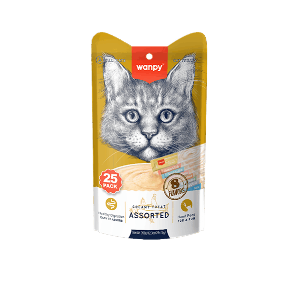 بستنی گربه ونپی مولتیپک ۸ طعم (بسته ۲۵ عددی) انتخابی عالی برای گربههای بالغ از هر نژاد است که دوست دارند طعمهای متفاوت را تجربه کنند. این پک شامل طعمهای مرغ، ماهی تن، مرغ و خرچنگ، تن و خرچنگ، تن و میگو، تن و سالمون، تن و ماهی کاد، و تن و صدف دریایی میباشد. با بافت نرم و طعمی جذاب، میانوعدهای سالم و خوشمزه برای گربه شما فراهم میآورد.
