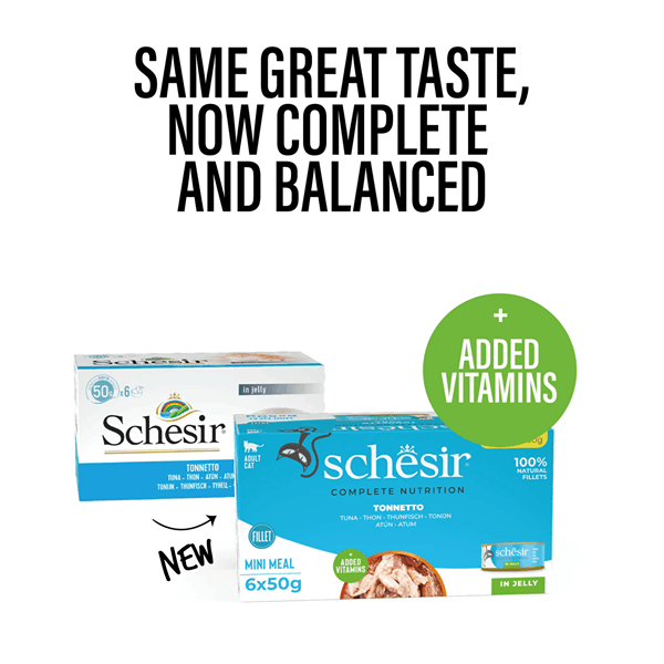 کنسرو گربه شسیر طعم ماهی تن در ژله Schesir wet cat food tuna in jelly وزن 50 گرم بسته 6 عددی