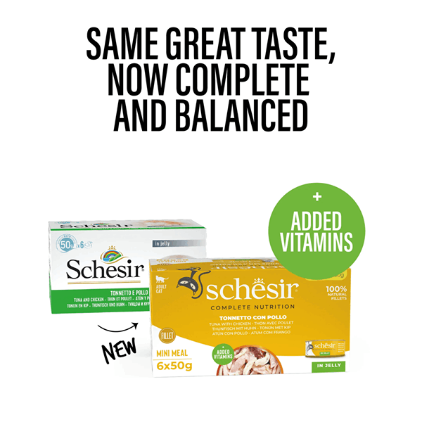کنسرو گربه شسیر طعم ماهی تن با مرغ در ژله Schesir wet cat food tuna & chicken in jelly وزن 50 گرم بسته 6 عددی