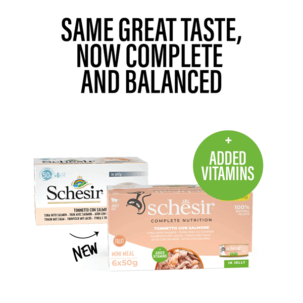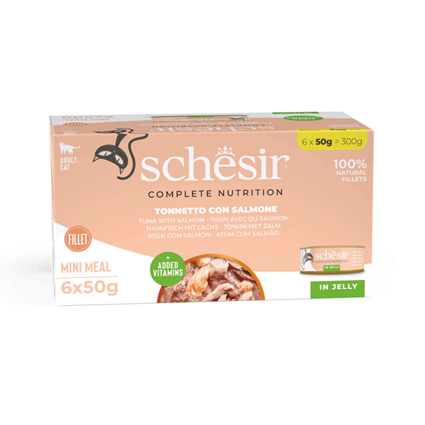 کنسرو گربه شسیر طعم ماهی تن با سالمون در ژله Schesir wet cat food tuna & salmon in jelly وزن 50 گرم بسته 6 عددی