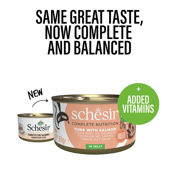 کنسرو گربه شسیر طعم ماهی تن با سالمون در ژله Schesir wet cat food tuna & salmon in jelly وزن 85 گرم