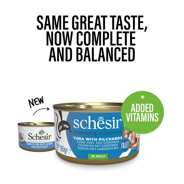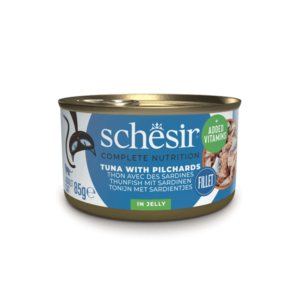 کنسرو گربه شسیر طعم ماهی تن با پیلچارد در ژله Schesir wet cat food tuna & pilchard in jelly وزن 85 گرم