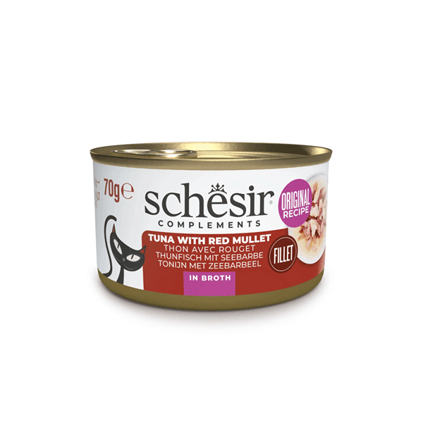 کنسرو گربه شسیر طعم ماهی تن با سرخو (رد مولت) در آبگوشت Schesir wet cat food tuna with red mullet in broth وزن 85 گرم