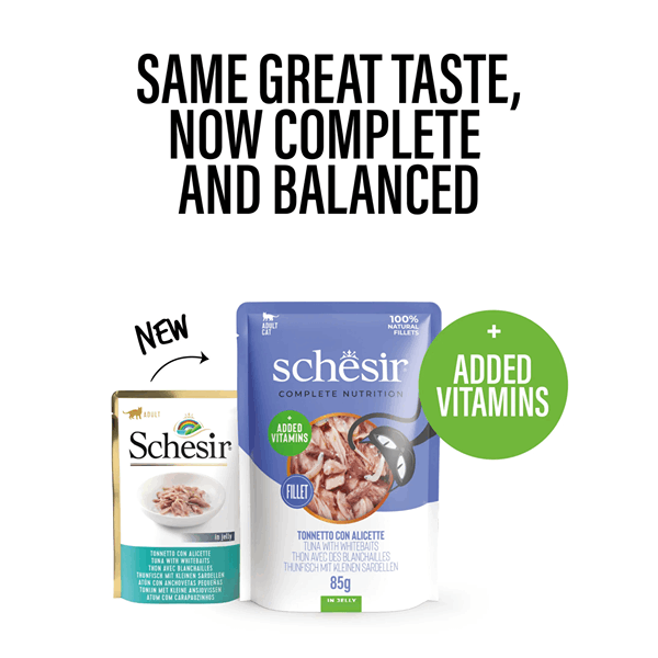 پوچ گربه شسیر طعم ماهی تن با ماهی سفید ریز Schesir wet cat food tuna with whitebaits وزن 85 گرم