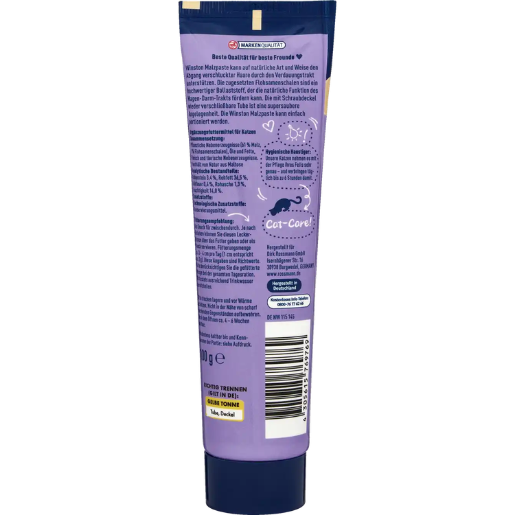 ویژگیها و مزایا خمیر مالت گربه وینستون مدل Winston Cat Malt Paste mit Flohsamenschalen: