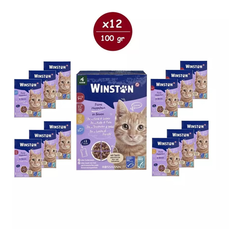 پوچ گربه وینستون مدل گروی چهار طعم در سس Winston Cat Wet Food Gravy Multi Flavor in Sauce بسته ۱۲ عددی :