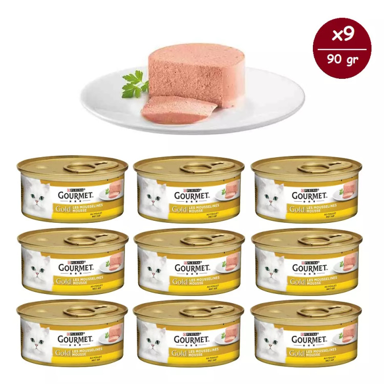 کنسرو پته گربه گورمت گلد طعم مرغ Gourmet Gold Cat Pate Can Chicken Flavor پک 9 عددی