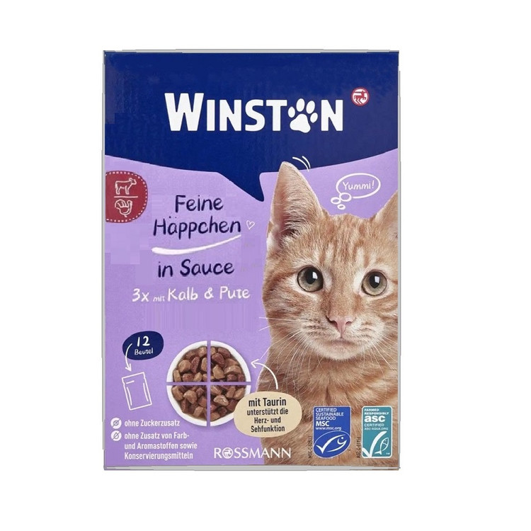 پوچ گربه وینستون طعم گوساله و بوقلمون در سس وزن 100 گرم