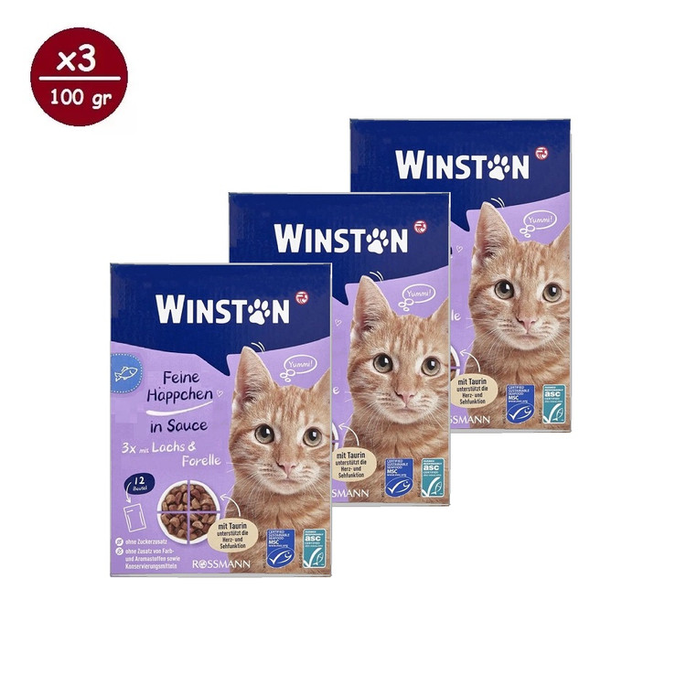 پوچ گربه وینستون طعم سالمون و قزل آلا وزن 100 گرم پک 3 عددی